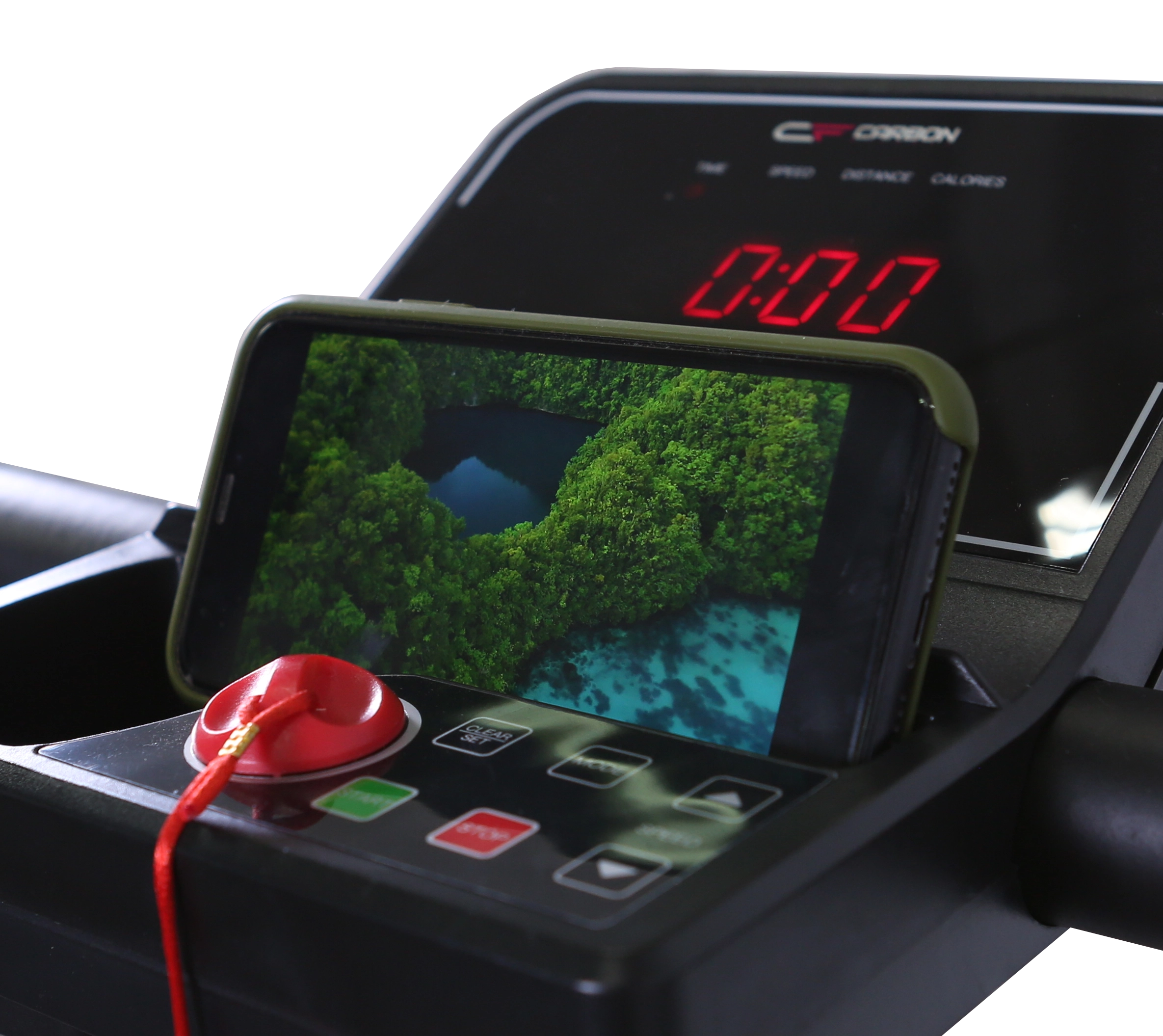 - У модели CARBON Т120 есть компенсаторы неровностей пола, за счет чего тренажер легко привести в нужное положение.