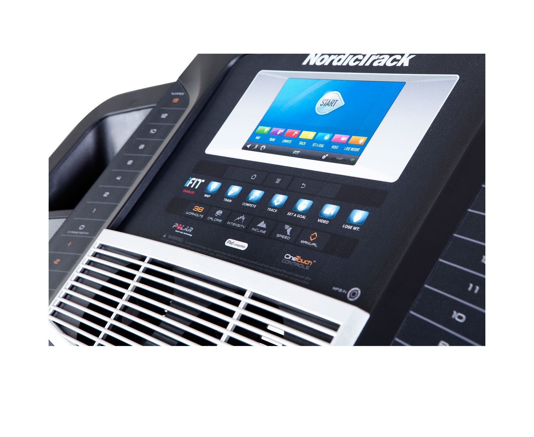 - На цветном сенсорном ЖК дисплее вы увидите время, скорость, пройденное расстояние, затраченные калории, угол наклона и частоту пульса. Всего в дорожке 38 программ, из них 8 направлены на похудение, есть скоростные программы, а также комплексы, использующие угол наклона, а также интенсивные программы. Не забудьте составить свой тренировочный комплекс – для этого достаточно задать необходимые параметры, а система сама вычислит для вас нужные параметры тренировки. Контроль за сердечным ритмом – важнейшая часть кардиотренировок.