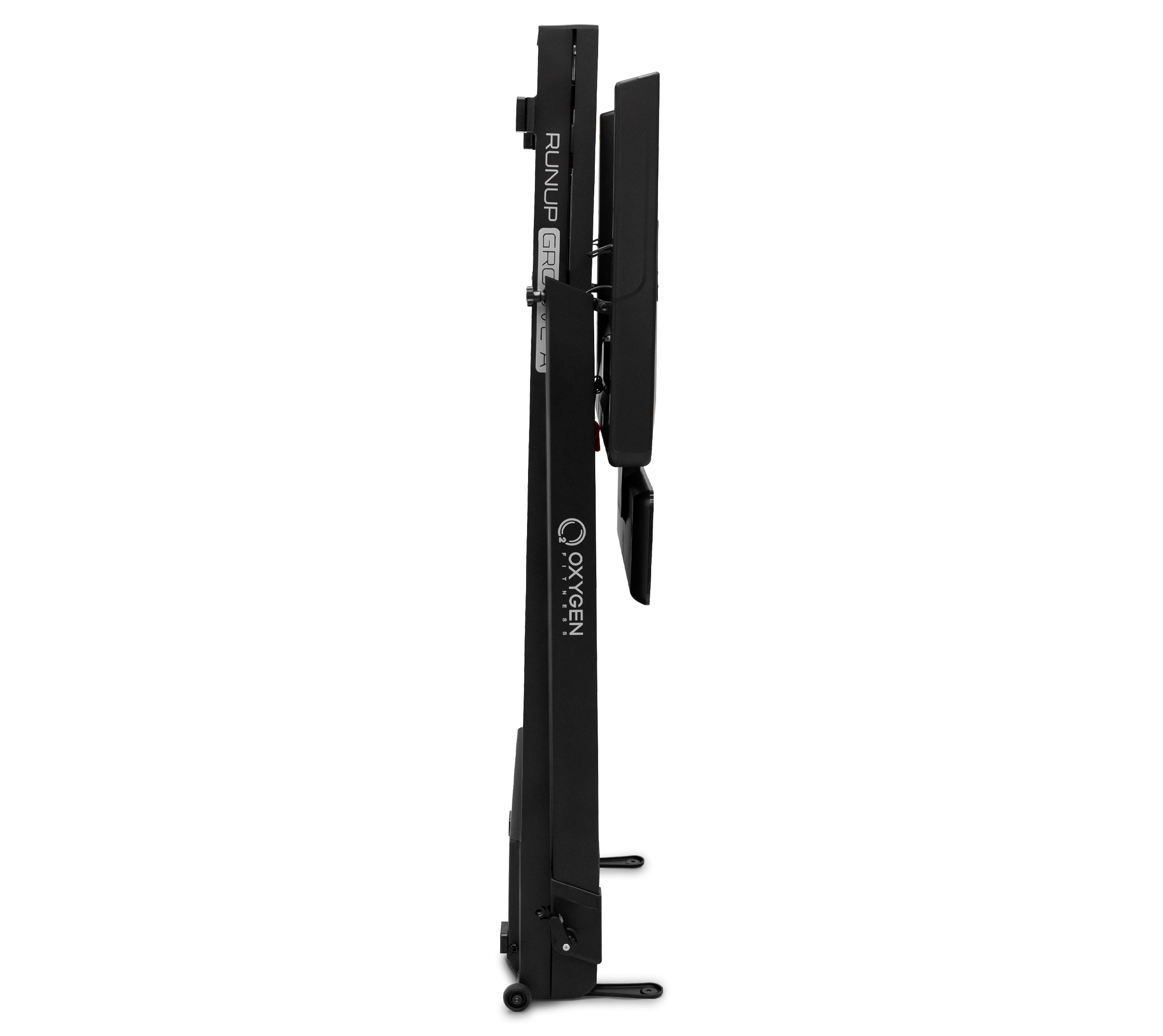 Серия беговых дорожек OXYGEN FITNESS RUNUP сочетает в себе простоту, функциональность и комфорт. Тренажеры отличаются современным строгим дизайном, выполненным в элегантной цветовой гамме. Кроме аккуратно состыкованных поверхностей и гармоничного баланса металлических и пластиковых материалов, в серии RUNUP нет ничего лишнего. Моторный отсек является продолжением рамы деки, находится с ней на одном уровне и выглядит как единое целое. Такое решение придает не только эстетическую законченность форм, но и является одним из важных факторов, позволяющим уменьшить размер тренажера. Система складывания позволяет сэкономить максимум пространства в помещении. Тренажер легко перемещается в нужное место за счет 2-ух транспортировочных роликов. Значительно облегчает складывание и раскладывание беговой дорожки гидравлическая система easyFOLD™. Тренажеры предварительно собраны на заводе, термин «быстрая сборка» тут очень к месту, так как для приведения в рабочее состояние дорожки, необходимо закрутить всего несколько болтов.