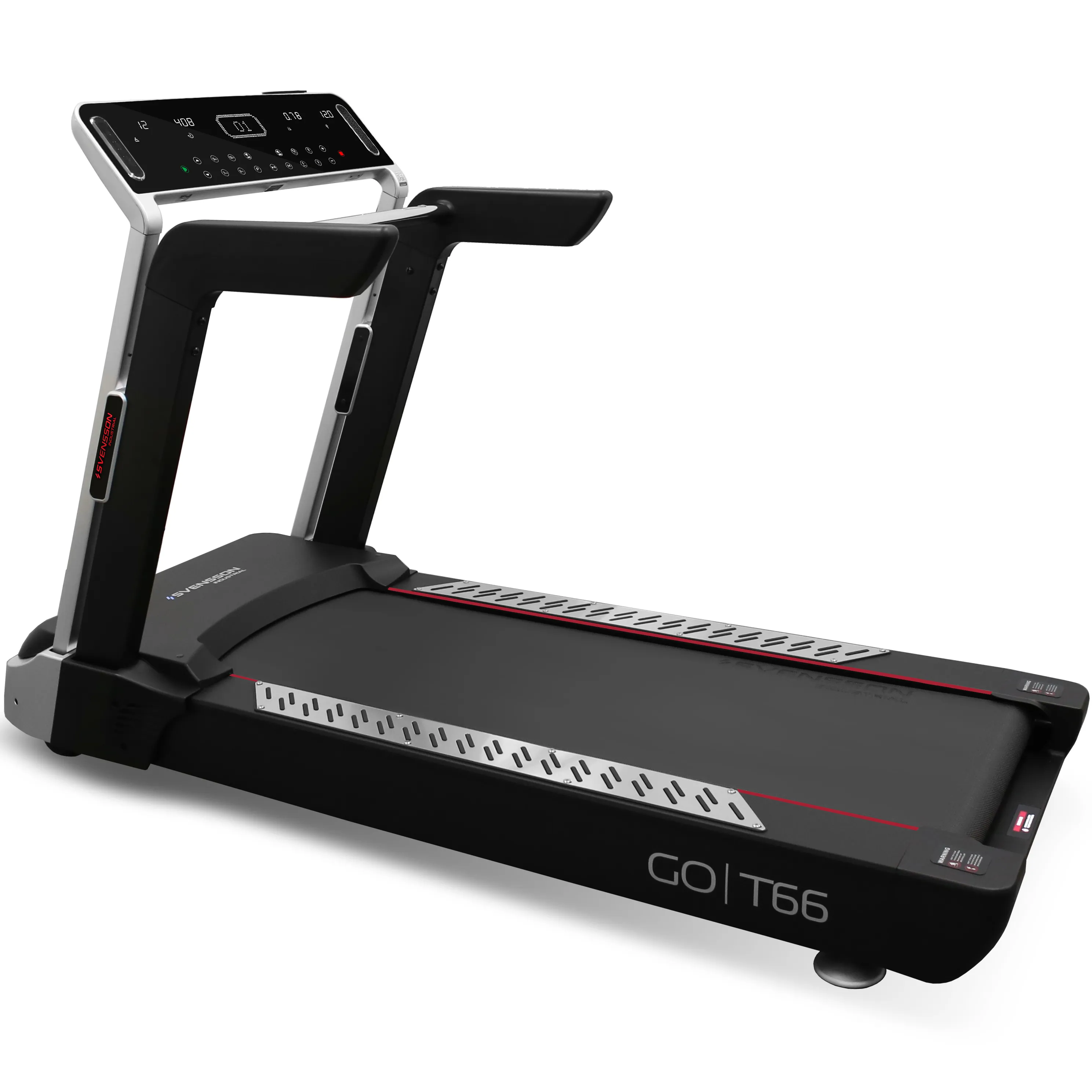Беговая дорожка GO T66 от шведского бренда SVENSSON INDUSTRIAL - это продолжение зарекомендовавшей себя серии GO, представленной основными видами профессионального кардио оборудования, предназначенной для залов со средней проходимостью. Главная отличительная особенность T66 кроется в ее внешнем виде. Это дизайнерская модель, разработанная специально для Jörgen Svensson LLC известным шведским интерьерным дизайнером Патриком Хагборгом (Patrik Hagborg). В основе визуальной концепции лежит элегантный черный цвет с добавлением элементов серебристого.