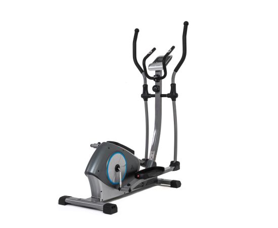Среднегабаритный эллиптический тренажер для домашнего использования. Тренажер с высокоскоростным маховиком и магнитной системой нагружения. Механическая регулировка нагрузки, 8 фиксируемых положений нагрузки с помощью удобной ручки на стойке тренажера.