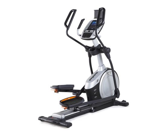 Домашний переднеприводный эллиптический тренажер с бесшумной электромагнитной системой нагрузки SMR Silent™; изменяемая длина шага, за счет электрической регулировки угла наклона рамы (до 20 градусов); 24 уровня сопротивления; 32 предустановленные программы; технология iFit®; встроенные датчики мониторинга сердечного ритма EKG™ Grip Pulse; 7” Touchscreen дисплей с Android web browser; охлаждающий вентилятор AutoBreeze™, iPod® -совместимая sound-система; держатель для планшета; держатель для бутылки; транспортировочные ролики.