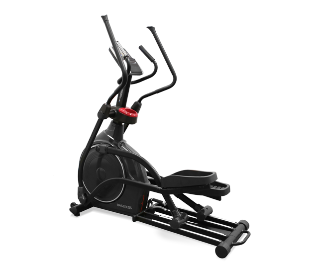 Электромагнитный эллиптический тренажер E55 от SVENSSON INDUSTRIAL - это пятая по счету модель серии BASE, которая уже имеет в своем арсенале беговые дорожки, адаптивный и эллиптический тренажеры. BASE - это уникальные продукты от шведского интерьерного дизайнера Патрика Хагборга (Patrik Hagborg), призванные обеспечить коммерческий сегмент с невысокой проходимостью (отели, корпоративные залы, спортивные школы и санатории). К тому же, вся линейка идеально подойдет и для домашнего использования. Как и во всей серии, в модели BASE E55 основным цветовым решением стал один из самых актуальных цветов - черный. Особый, премиальный вид оборудованию придает оттенок красного цвета. На BASE E55 используются и элементы цвета металлик - это холодный цвет, напоминающий нам о стране происхождения эллиптического тренажера - Швеции. Это выглядит не только эффектно, но и разбавляет чрезмерную строгость образа.