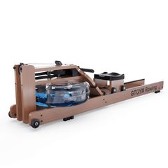 Консоль гребного тренажёра GTGYM Frank имеет 8 уровней регулировки педалей и показывает время, расстояние, калории, пульс и обороты в минуту. Система нагрузки является водной: чем больше вы зальёте в бак воды, тем больше будет нагрузка. Транспортировочные ролики позволяют легко перемещать тренажёр, а его размер в сложенном виде составляет 60 x 56,5 x 210 см.