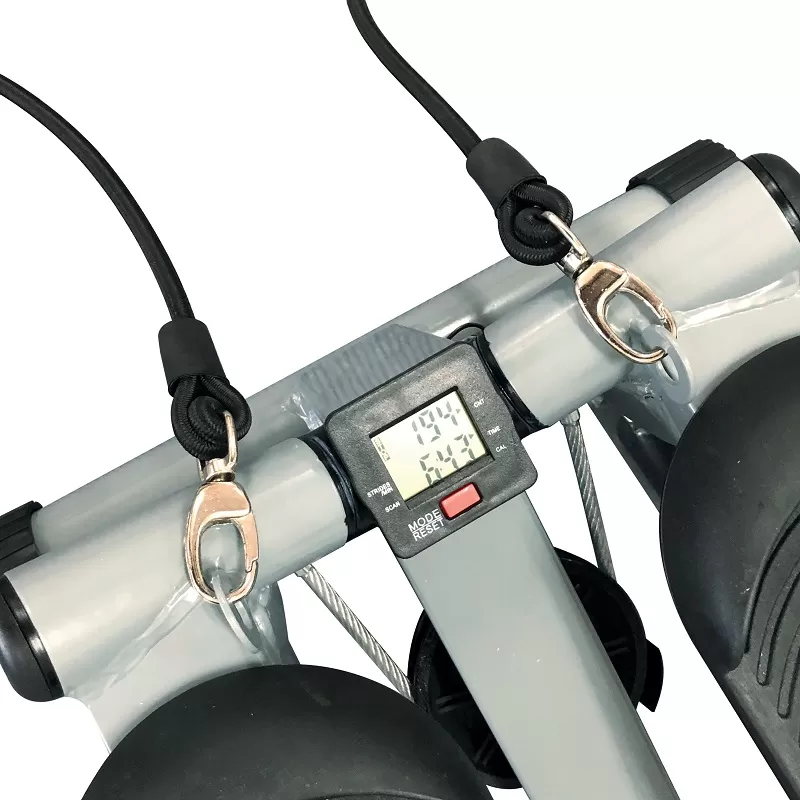 - Мини-степпер оснащен консолью, на экран которой выводятся основные показатели тренировки: время, количество шагов за тренировку, потраченные калории.