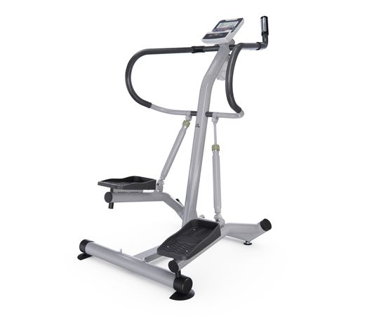Степпер оснащен гидравлической системой нагружения с 12 уровнями сопротивления, что позволяет индивидуально настроить нагрузку для каждой ноги. Измерение пульса осуществляется с помощью сенсорных датчиков на поручнях.