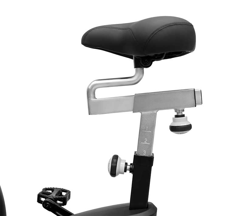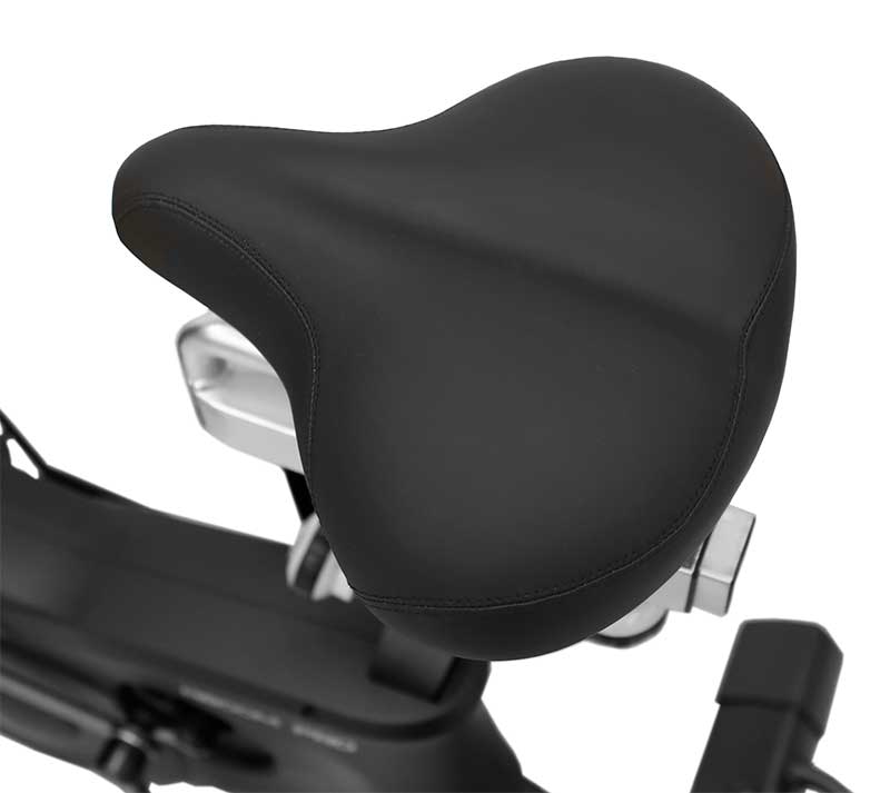 - На A800M PRO есть возможность акцентировать тренировку на руки, или отдельно на ноги. За комфорт во время интенсивных тренировок отвечает сиденье профессионального класса. Отрегулировать его можно под любого пользователя, как по вертикали, так и по горизонтали. На тренажере установлены педали с антискользящим покрытием в виде рельефного узора и ремешками для надежной фиксации ног.