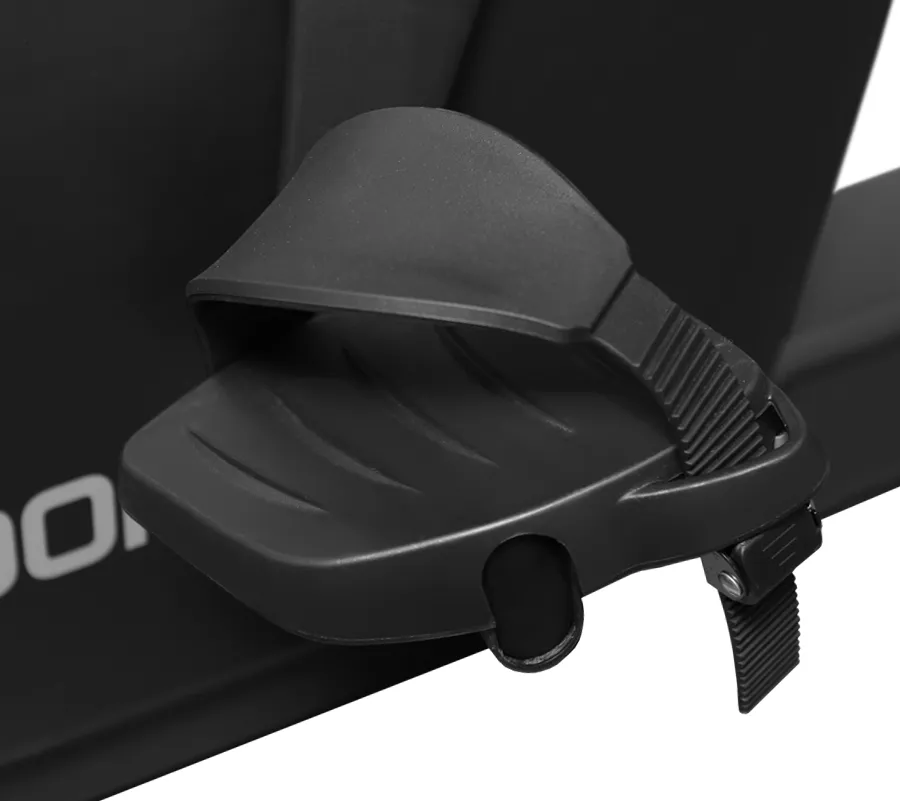 - Рифленые самобалансирующиеся педали с прорезиненными многопозиционными ремешками обеспечивают надежное сцепление на любых скоростях.