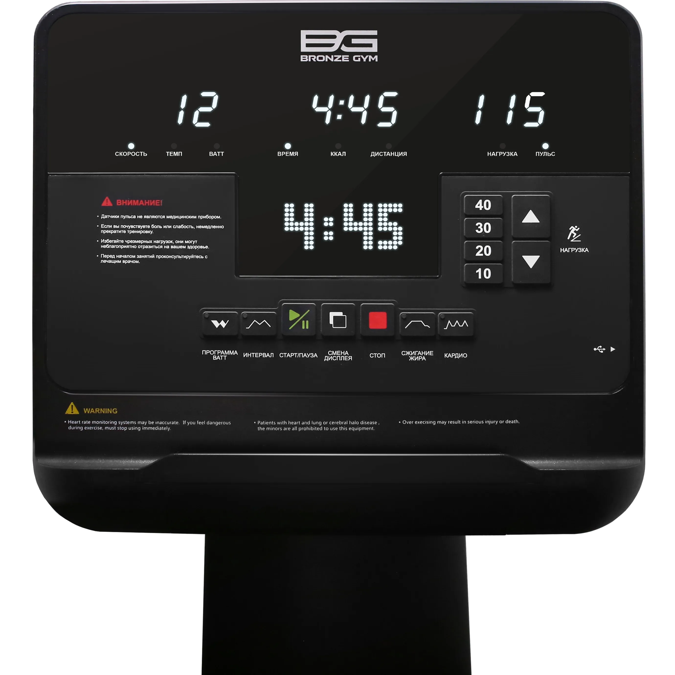 - Тренировочный компьютер на Bronze Gym R1200M PRO представлен многофункциональным матричным LED-дисплеем диагональю 15,6 дюймов.