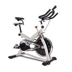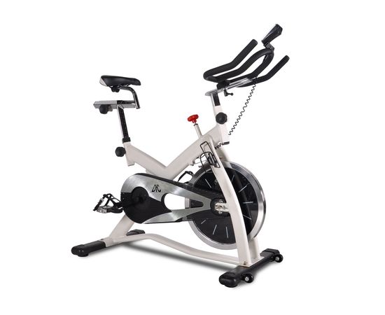 Вертикальный механический спин-байк с ременным типом привода и колодочной системой нагружения. Изменение нагрузки с помощью удобной рукоятки на корпусе тренажера. Предусмотрен экстренный тормоз.