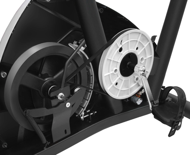 - Запатентованная приводная система электромагнитного типа SpinMaster EMS построена на основе утяжеленного сбалансированного маховика весом 11 кг, высокоточных шведских подшипников производства SKF и трехкомпонентного шатуна велосипедного типа. Связка этих компонентов обеспечивает самое плавное педалирование в широчайшем диапазоне нагрузок.