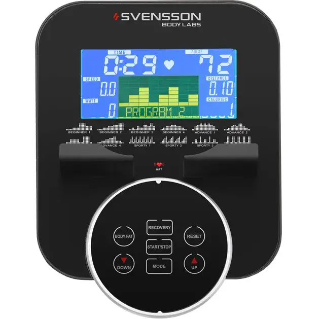 - В программный пакет входят 12 предустановленных программ, направленных на тренировку скоростных качеств, выносливости, укрепления сердечно-сосудистой системы и похудания.