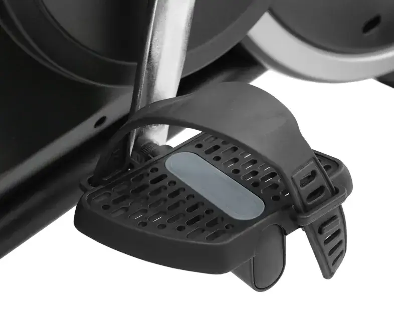 - Педали с рифленой антискользящей поверхностью и регулируемые прорезиненные ремешки надежно фиксируют положение стопы любого размера.