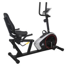 Велотренажер с удобной горизонтальной посадкой и бесшумной магнитной системой нагружения. Нагрузка имеет ручную регулировку с помощью ручки на стойке тренажера, 8 положений. Мягкое регулируемое сиденье с мягкой спинкой.