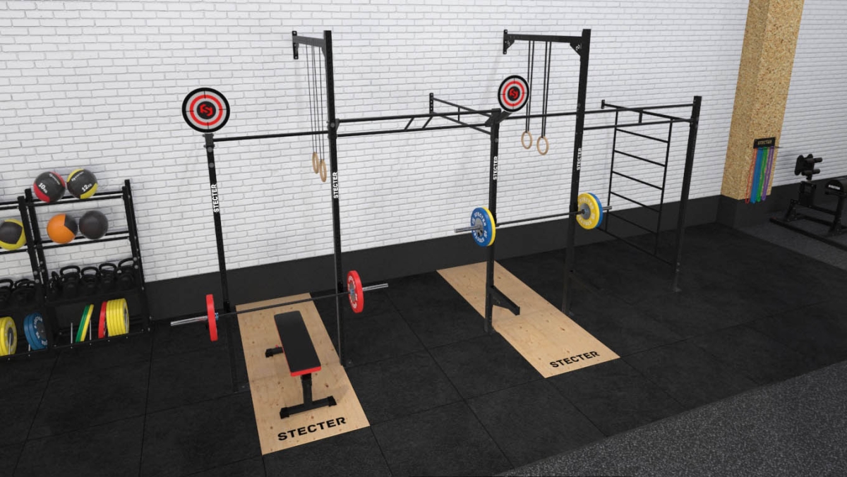 - Элементы функциональной рамы для Кроссфит покрываются порошковой краской по технологии электростатического напыления и обжигаются в печи при высокой температуре. Вы можете выбрать цвет опорных стоек.