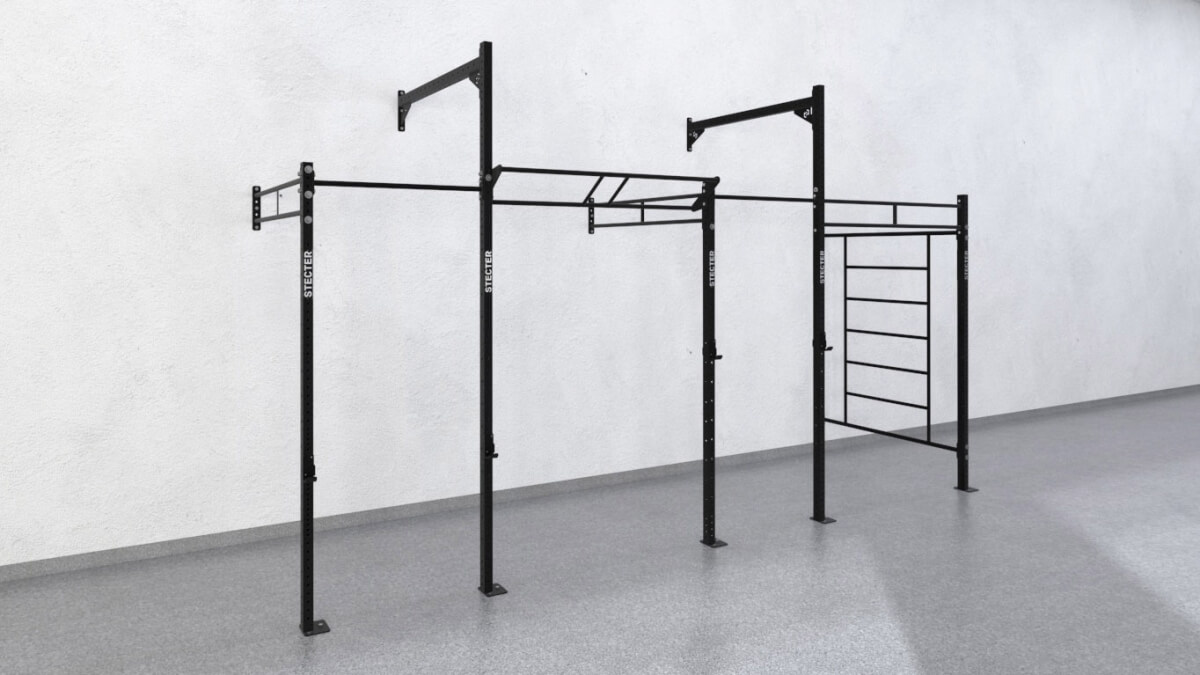 Заказчик может по своему желанию внести некоторые изменения в конструкцию рамы. Функциональные рамы состоят из основных элементов – стоек и перекладин, которые бывают одинарными, двойными и тройными. Стандартные размеры стоек – 2315, 2810 и 3665 мм (высота позволяет крепить такие снаряды, как гимнастические кольца и канаты). Перекладины выпускаются в двух размерах – 1100 и 1800 мм.