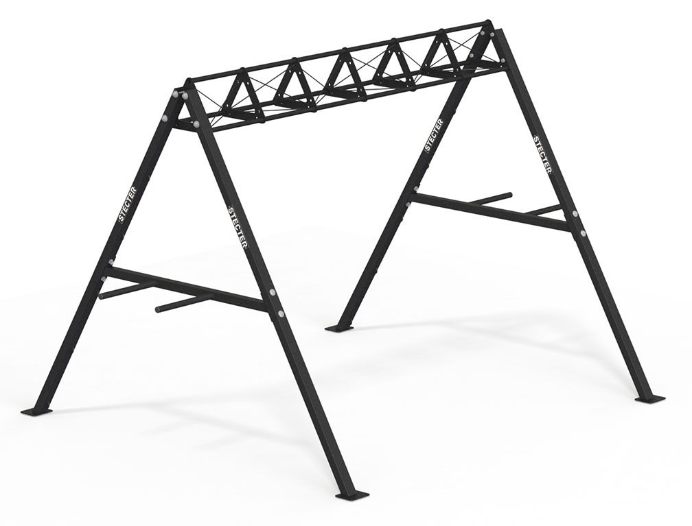 - Стальные опоры соединены между собой брусьями, что, во-первых, расширяет функциональность, а во-вторых, повышает ее прочность.