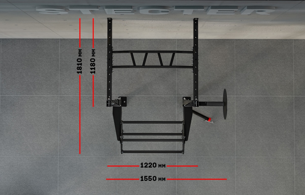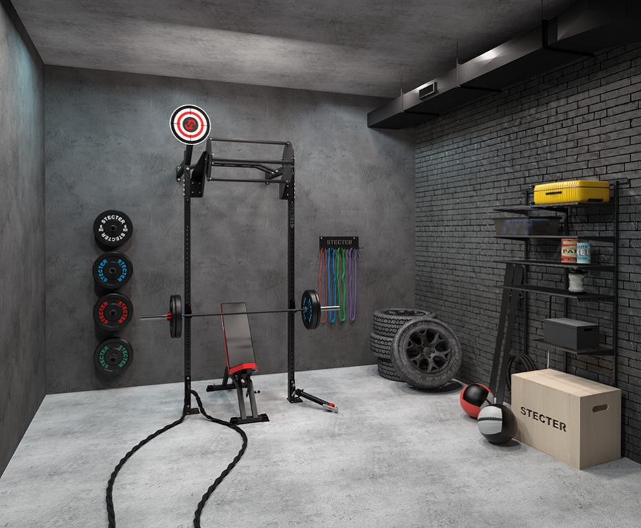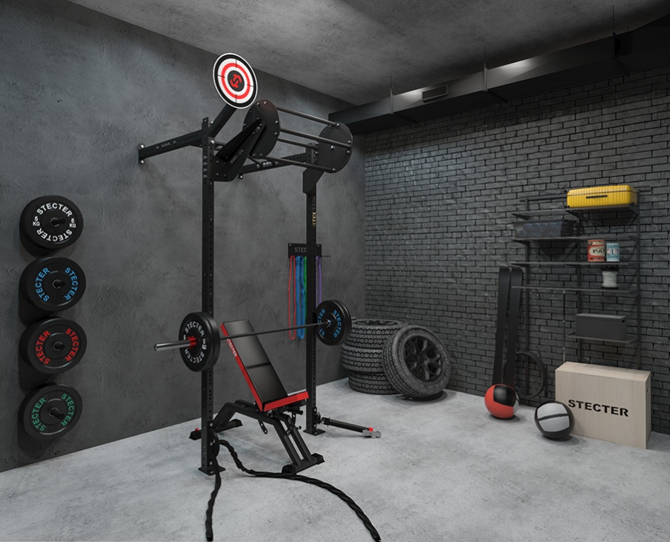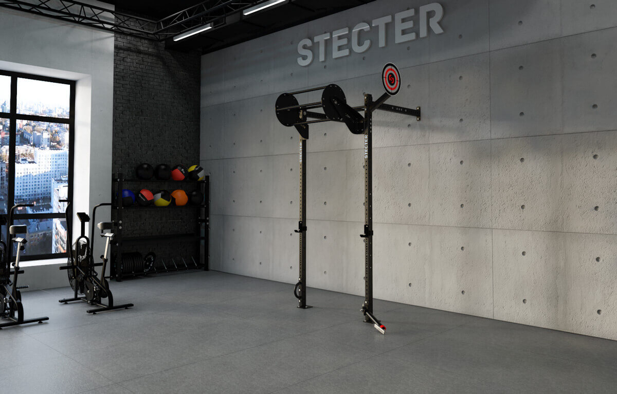 - В комплекте в рамой сразу поставляются J-крюки с защитными пластиковыми накладками, мишень для медбола, кронштейн для тренировочного каната и пост для тяги Т-грифа Stecter Expert Landmine. В результате Вы получаете универсальную пристенную силовую станцию для круговой тренировки.