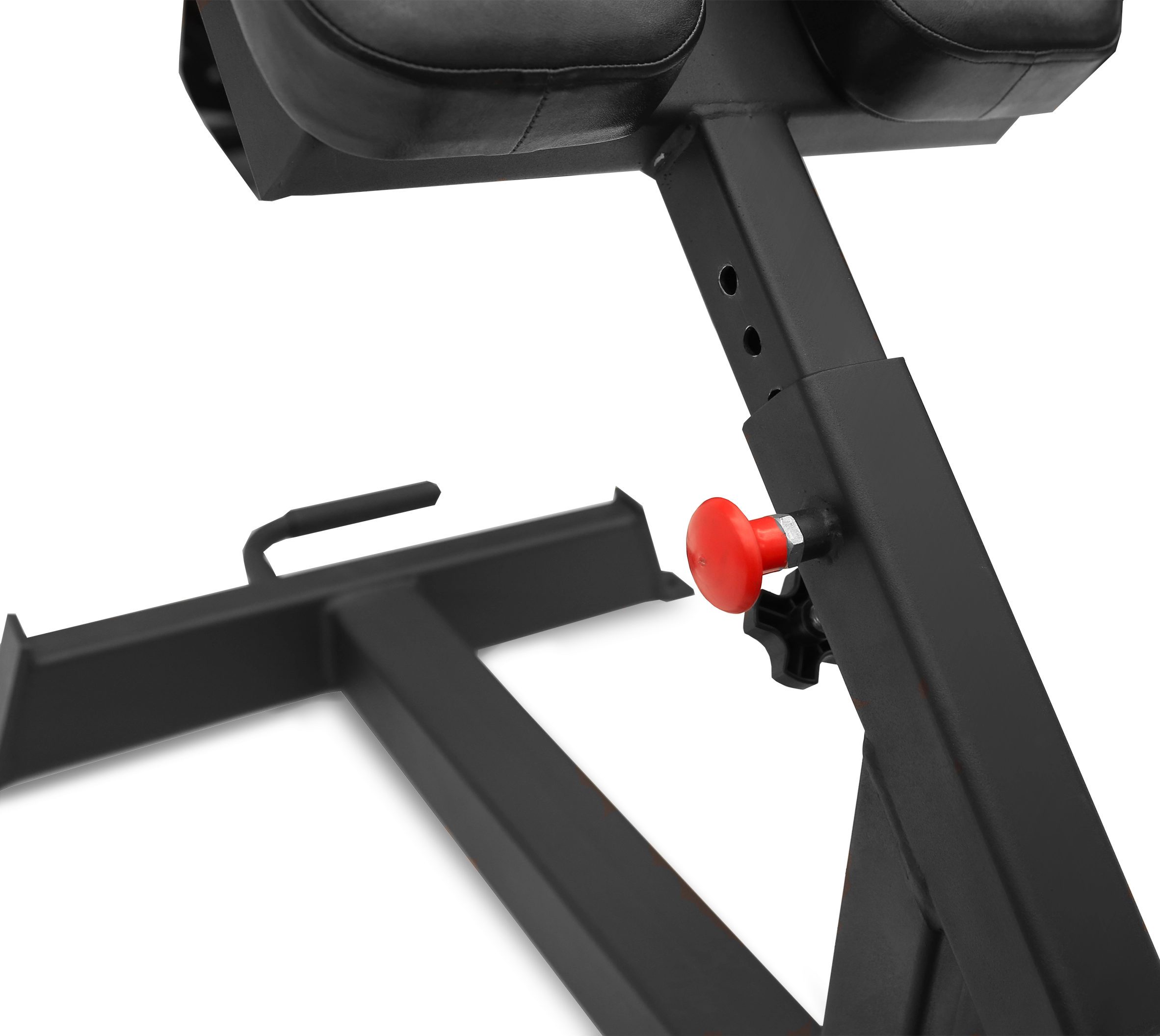 - Для настройки гиперэкстензии под рост пользователя установлена возможность регулировки парты по длине.