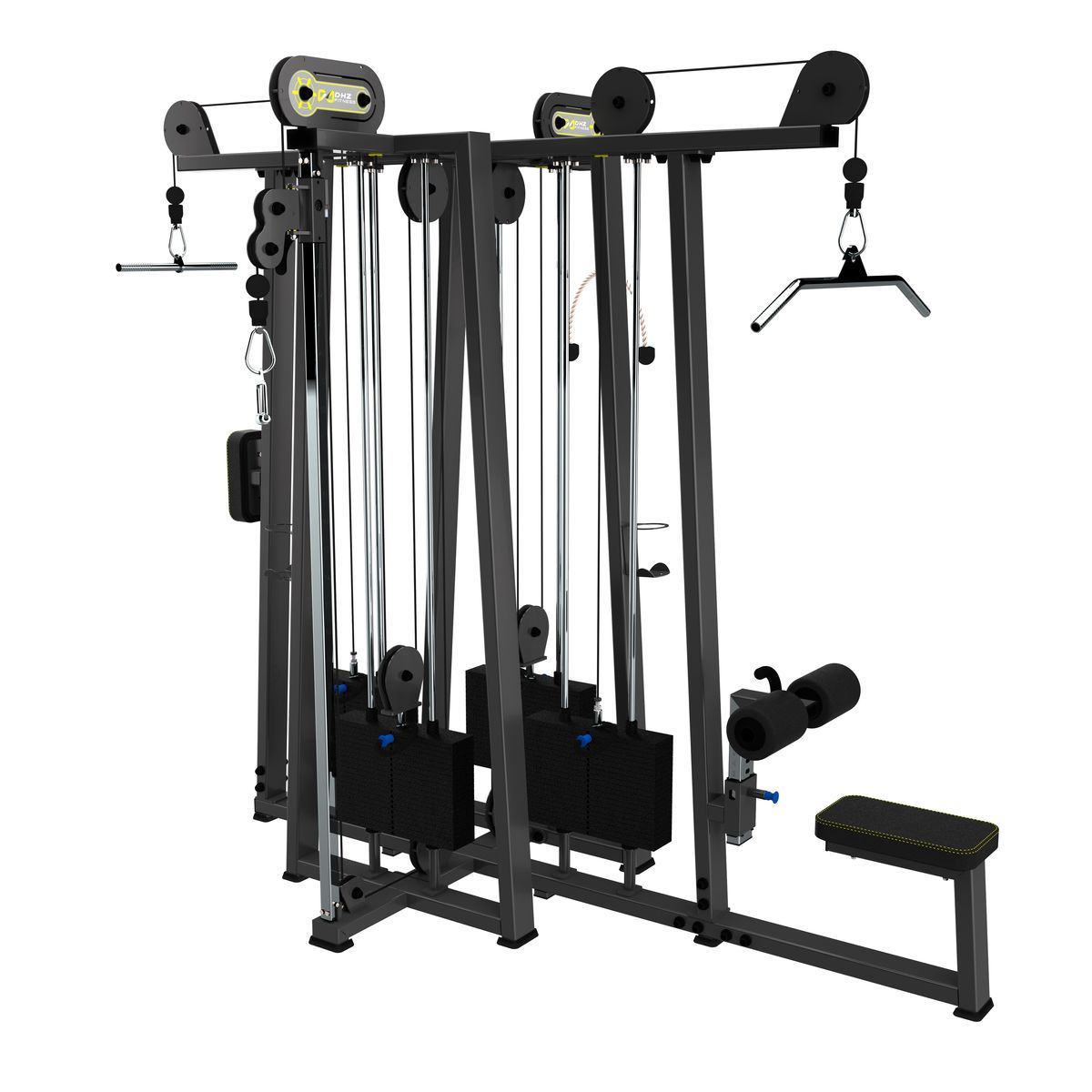 Универсальная конструкция, включающая 4 стека и выполняющая функции 4 независимых тренажеров: