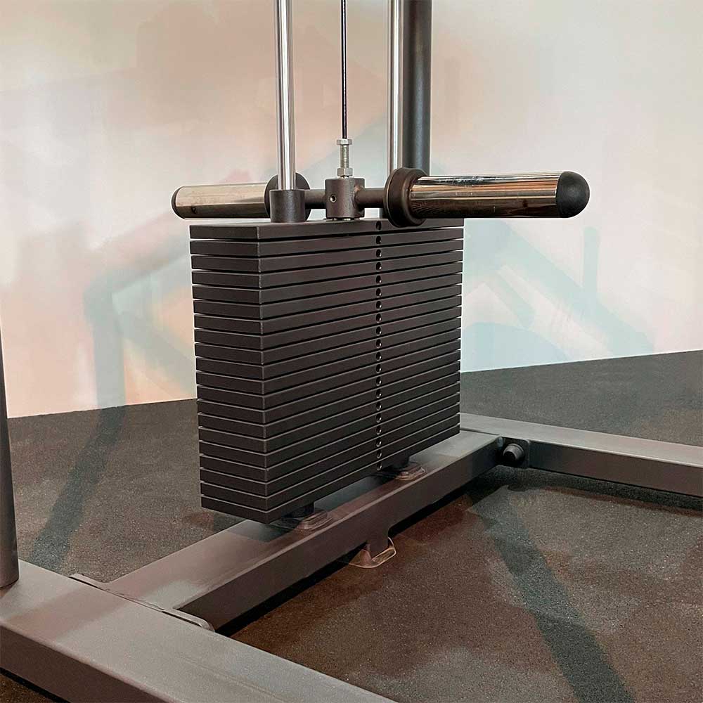- Максимальный вес стека 100 кг, плюс дополнительно можно использовать держатель дисков для увеличения нагрузки.