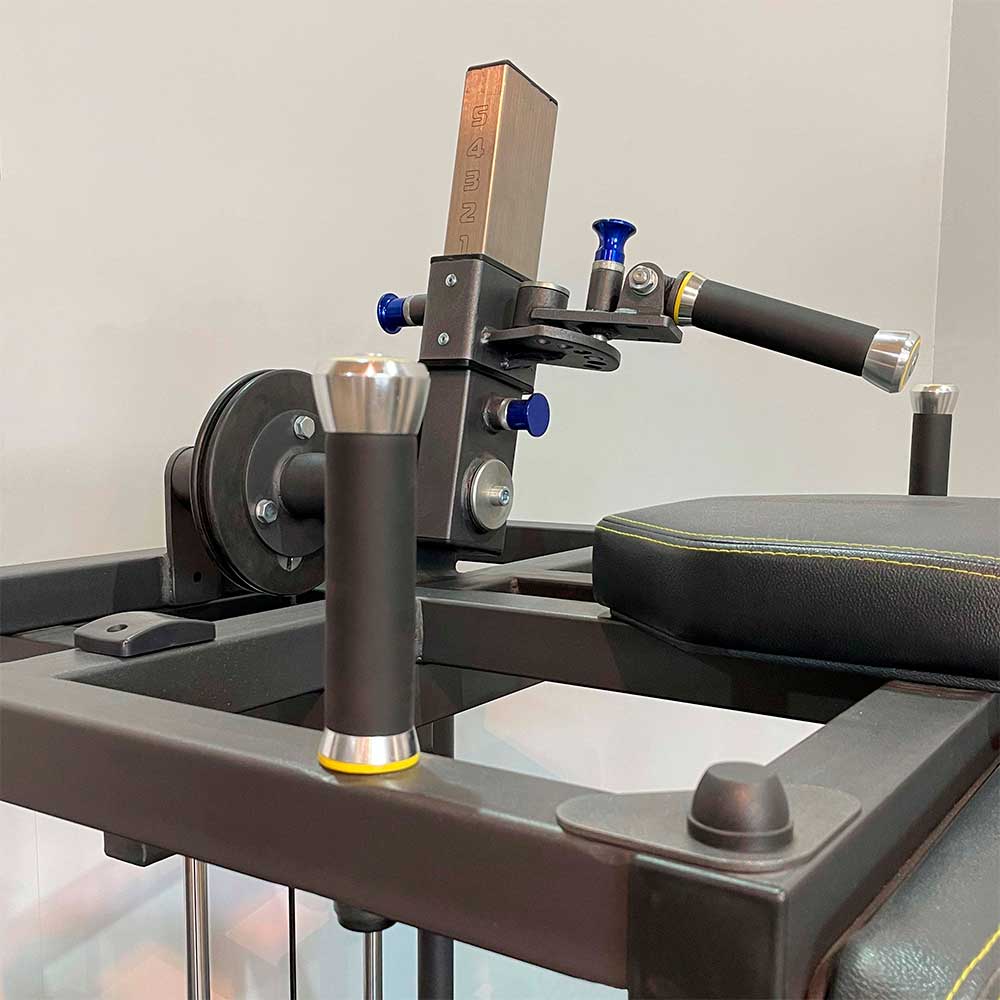 - Рукоять для хвата имеет 3 степени регулировок, что дает настроить начальное положение для любого пользователя. На данном тренажере можно тренировать как левую, так и правую руки, путем переключения пружинного фиксатора на диске.