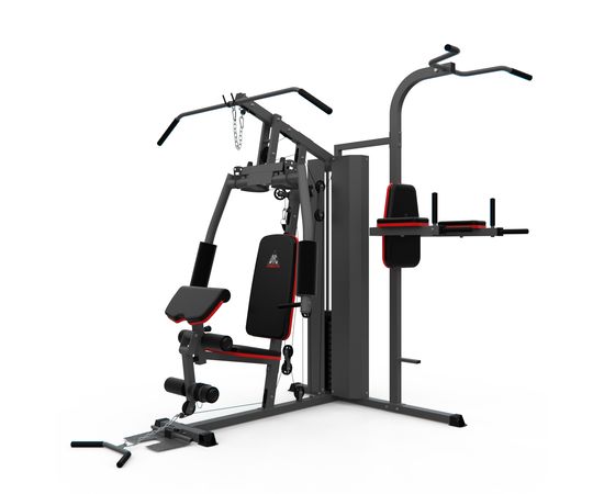 Многофункциональный силовой комплекс DFC D7004 оснащён множеством снарядов для упражнений на все группы мышц. Максимальный вес пользователя до 120 кг. Профиль основной трубы 70 х 50 х 1,5 мм. 11 весовых пластин в комплекте. Спинка регулируется по горизонтали на 3 уровня. Вес стека 72 кг, 1 блок – 6 кг.