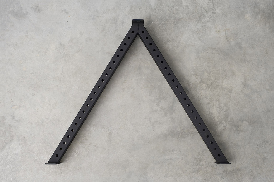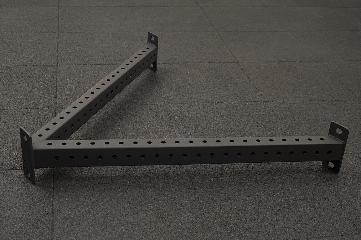 Угловая балка позволяет соединить сразу 3 стойки кроссфит рамы. Таким образом, Вы получите прочную треугольную конструкцию, которая занимает меньше места и может быть поставлена в угол помещения.