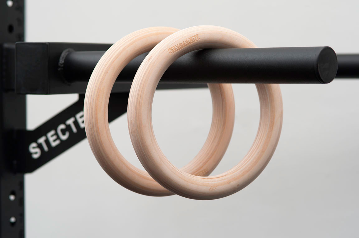 Высокая прочность и износостойкость деревянных колец уже давно великолепно зарекомендовала себя у профессиональных спортсменов. Купить гимнастические кольца вы можете в нашем магазине. В комплект входят два кольца.