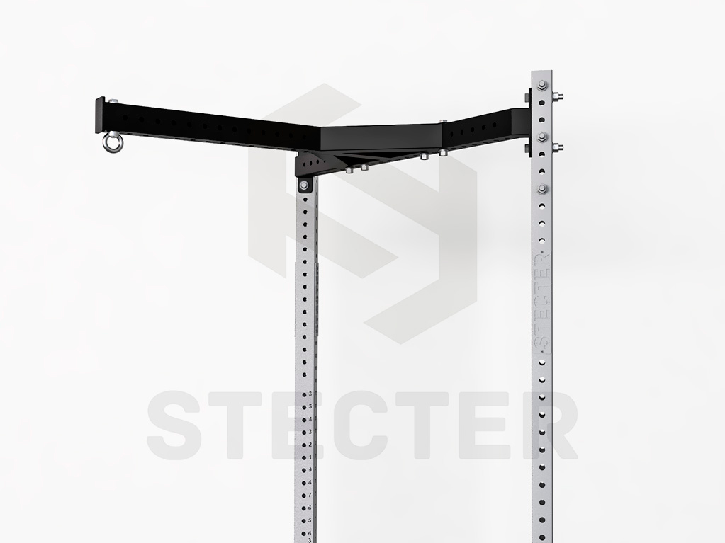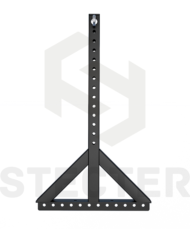 Кронштейн для подвесных снарядов необходим, чтобы повысить функционал Вашей кроссфит рамы. На него вы сможете подвесить боксерский мешок, канат, гимнастические кольца и другое подвесное оборудование. Он устанавливается на балку функциональной рамы. Монтажные отверстия диаметром 17 мм располагаются с шагом 50 мм - это на 99% гарантирует что элемент подойдет к Вашему оборудованию.