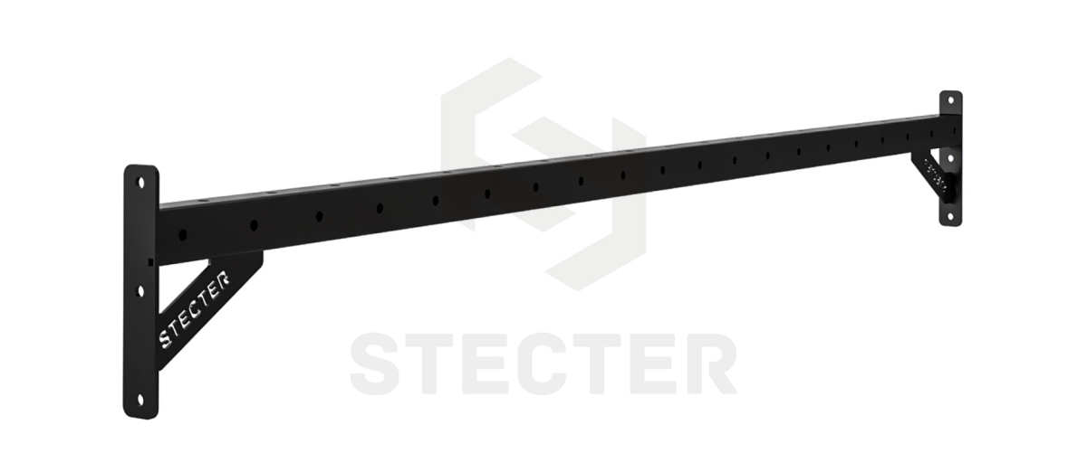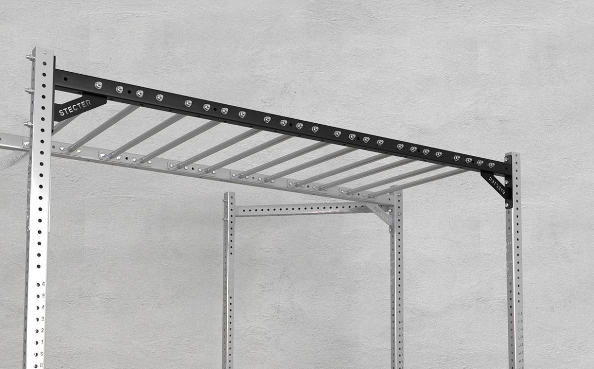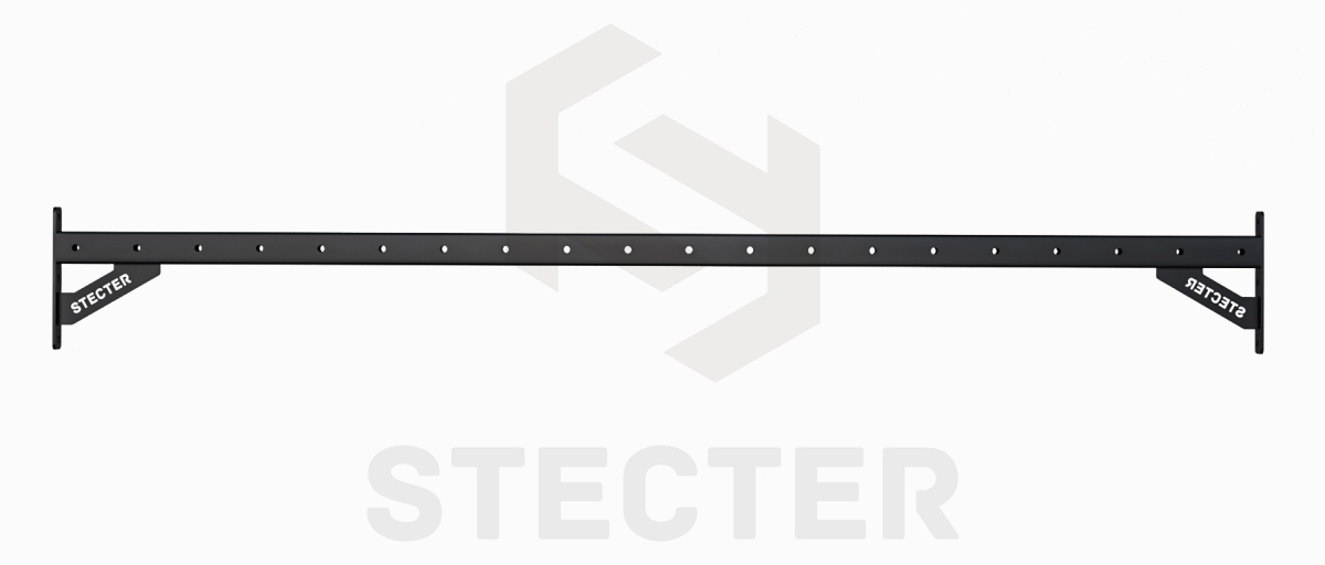 Усиленная многофункциональная балка это универсальный конструктивный элемент, к которому Вы можете закрепить множество спортивных снарядов. По всей длине балки располагается перфорация для крепления различных навесных снарядов или других элементов рам. Сама балка монтируется к опорным стойкам.