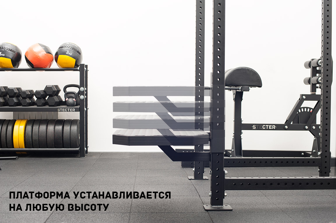 Каркас платформы изготовлен из прочной стальной трубы. Конструкция цельносварная. Поверхность окрашивается черной матовой порошковой краской и запекается в печи при высокой температуре. Купить платформу для запрыгиваний Вы можете в нашем магазине.