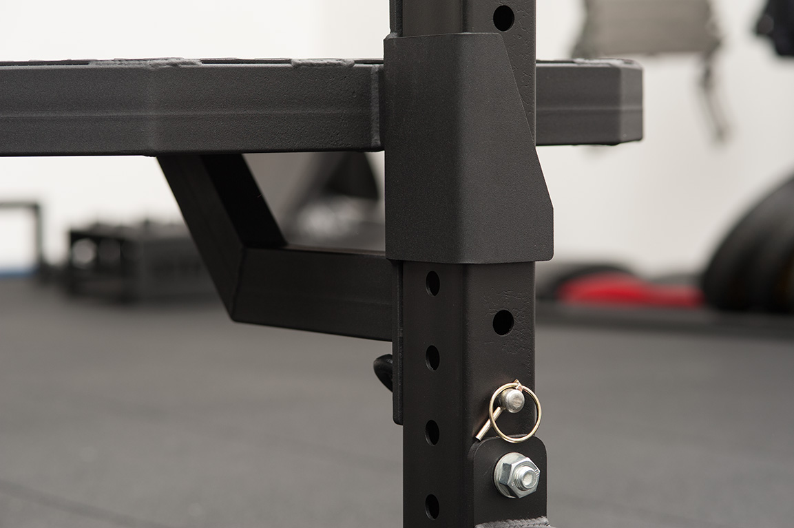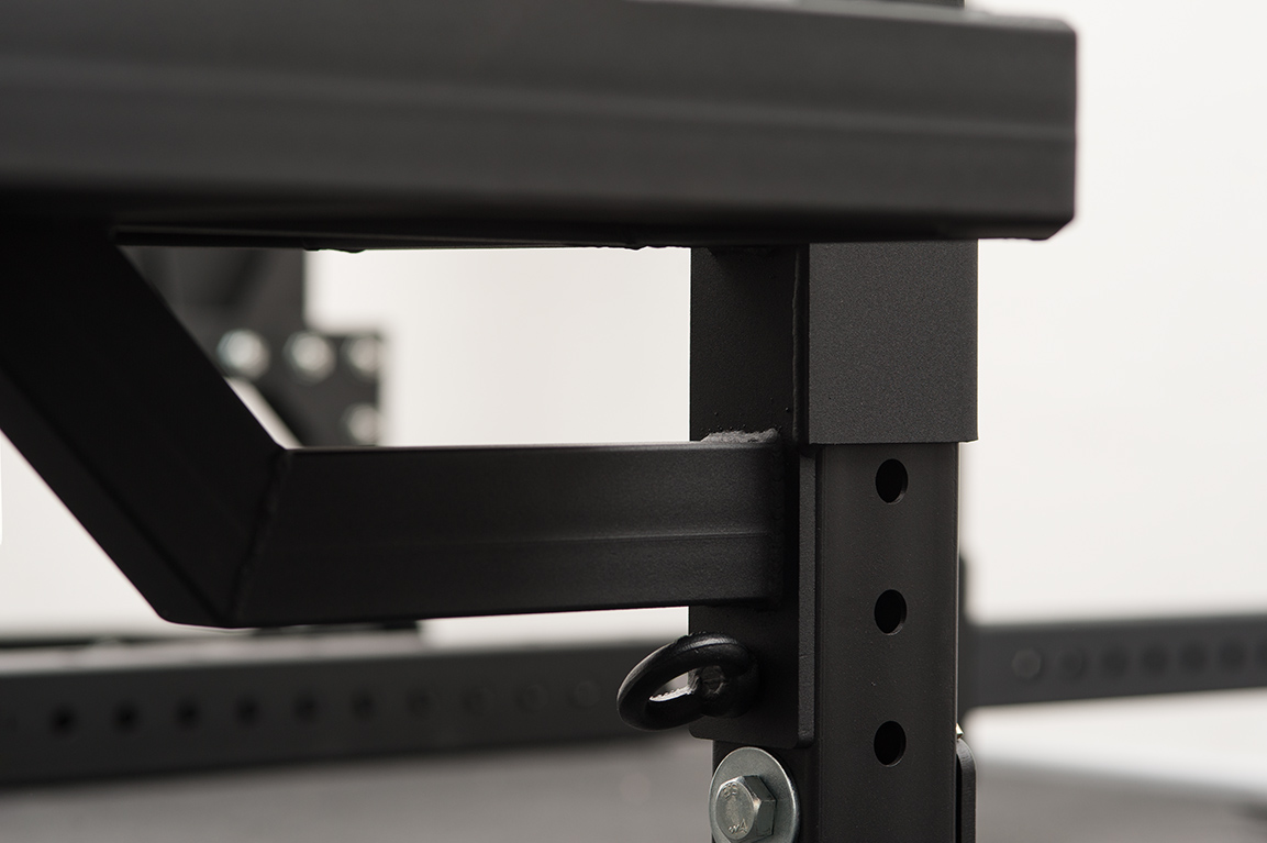 Платформа устанавливается на нужной высоте к опорной стойке функциональной рамы или силовой стойке сечением 80х60 мм на сторону 60 мм. Дополнительно фиксируется при помощи штыревого фиксатора диаметром 16 мм. Для изменения высоты необходимо повернуть на 45 градусов платформу, переставить на нужную высоту и вновь установить штыревой фиксатор. Таким образом Вы можете выставлять любую высоту платформы в зависимости от шага перфорации на опорной стоке рамы.