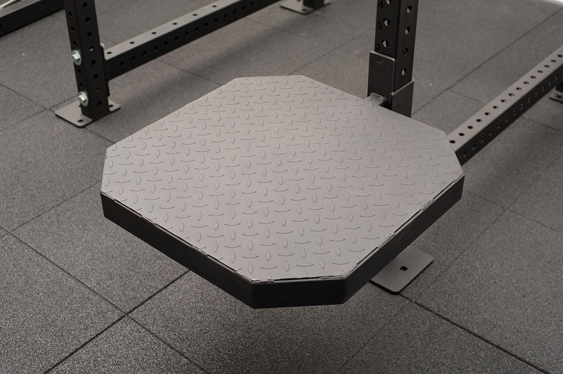 В современных тренировочных программам существует огромное количество упражнений на запрыгивания и зашагивания. Для проведения таких тренировок мы предлагаем быстросъемную платформу с противоскользящей рифленой поверхностью. Размер рифленой площадки – 600 х 600 мм.