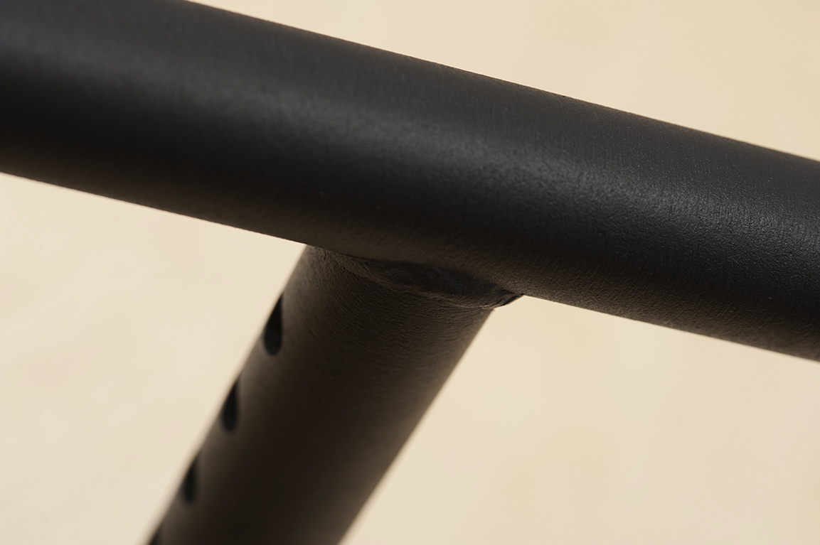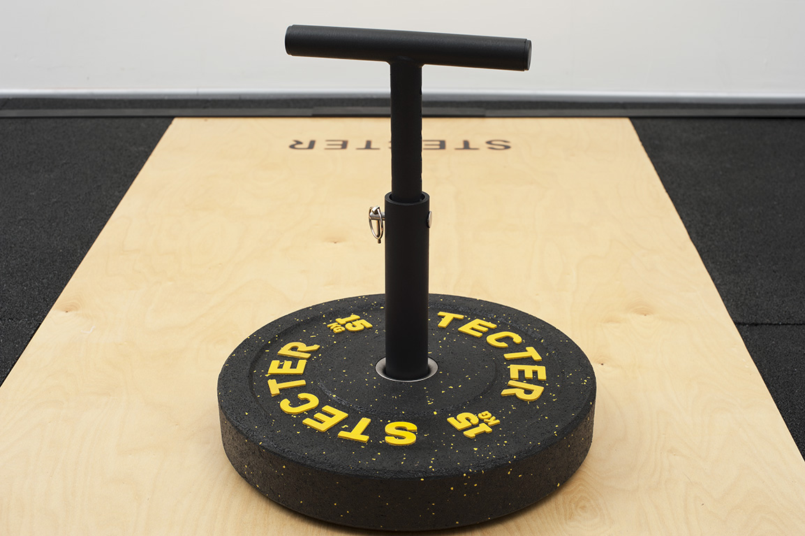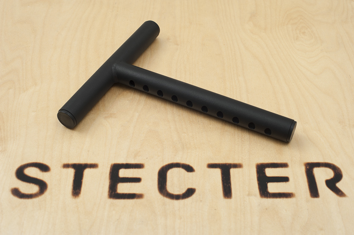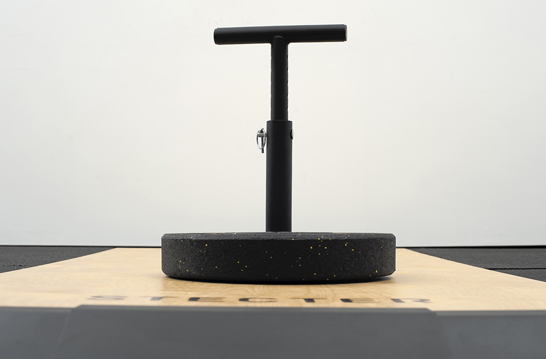 Рукоятка изготовлена из толстостенной стальной трубы диаметром 34 мм. Регулировочный штырь Т-рукоятки имеет 11 отверстий, благодаря которым Вы можете изменять ее высоту в пределах 225 мм с шагом в 25 мм. Это позволяет быстро и легко регулировать высоту под каждого спортсмена. Ширина верхней (горизонтальной) части рукоятки составляет 250 мм.