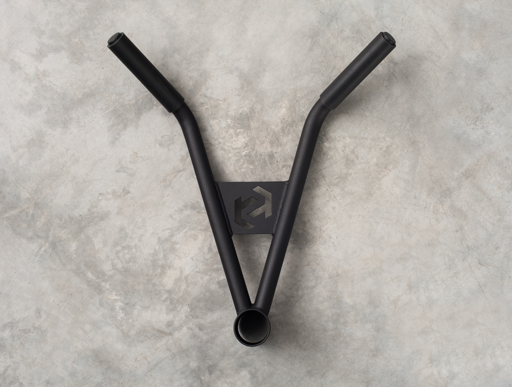 Рукоятка на гриф – важный аксессуар, применяемый для выполнения Т-образной тяги – одного из основных упражнений для развития мышц спины. Угловая рукоятка имеет V-образную форму, на концах расположены удобные резиновые ручки, улучшающие сцепление руки со снарядом. Ширина рукоятки – 42 см, она совместима с олимпийскими грифами (диаметр втулки 50 мм). Купить угловую рукоятку для Т-тяги вы можете в нашем магазине