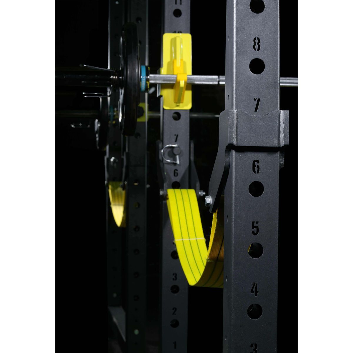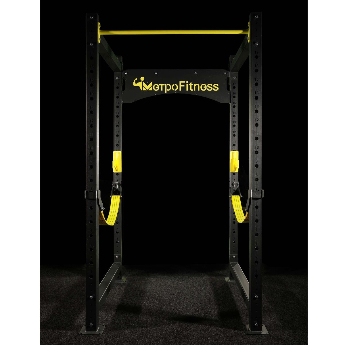 Силовая рама (Power Cage) изготовлена из высокопрочной стали рама выдерживает высокий уровень нагрузки. Высоту упоров для штанги можно варьировать, что позволяет установить скамью для выполнения упражнения жим из положений сидя или лежа.
