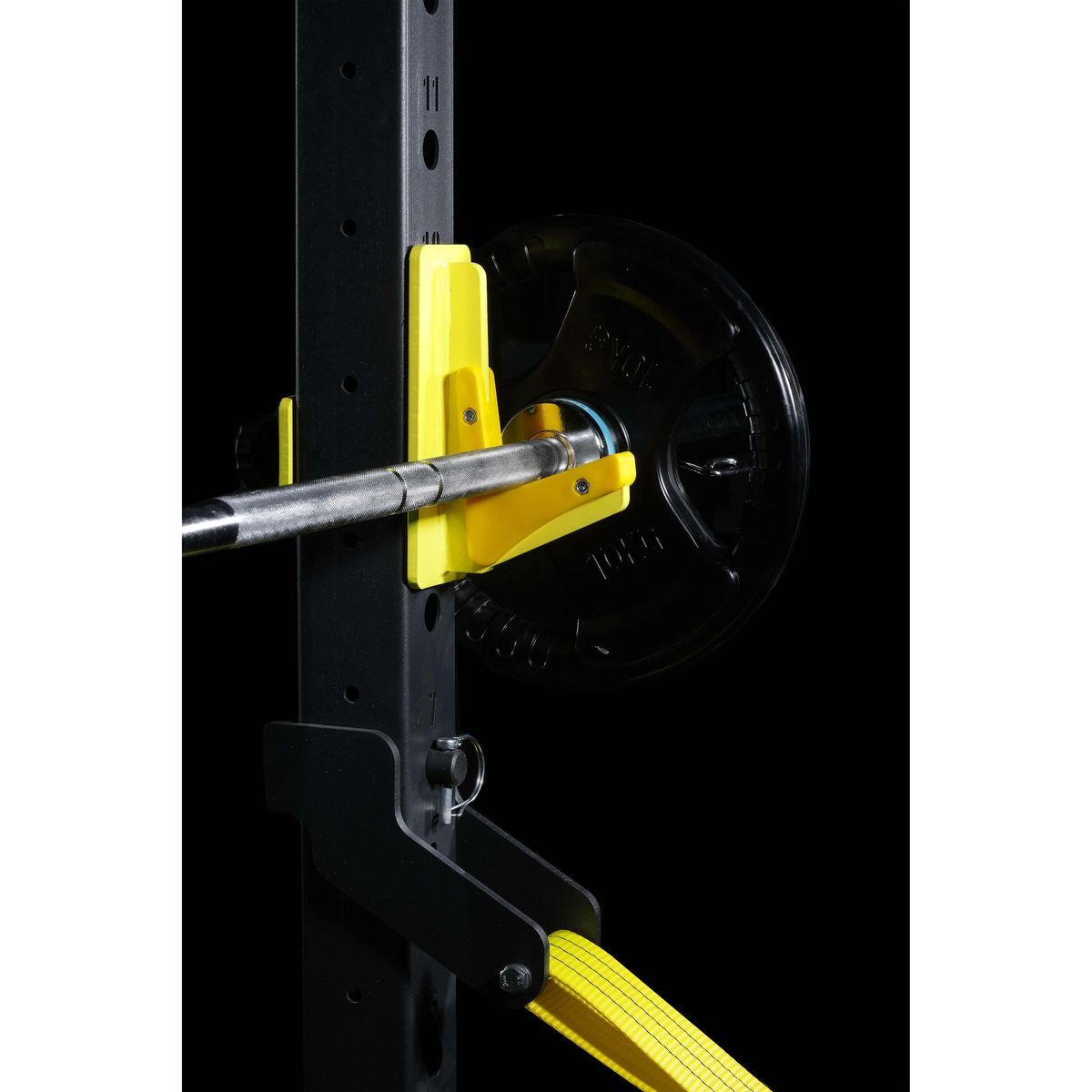 - Силовая рама оснащена регулируемыми по высоте страховочными упорами и фиксаторами для штанги, которые можно подстраивать под рост спортсмена или под конкретные тренировки, так же это позволяет установить скамью для выполнения упражнения жим из положений сидя или лежа. Вверху силовой рамы расположен турник. Страховочные упоры сделают упражнения со штангой более безопасными и менее травмоопасными для спортсменов.