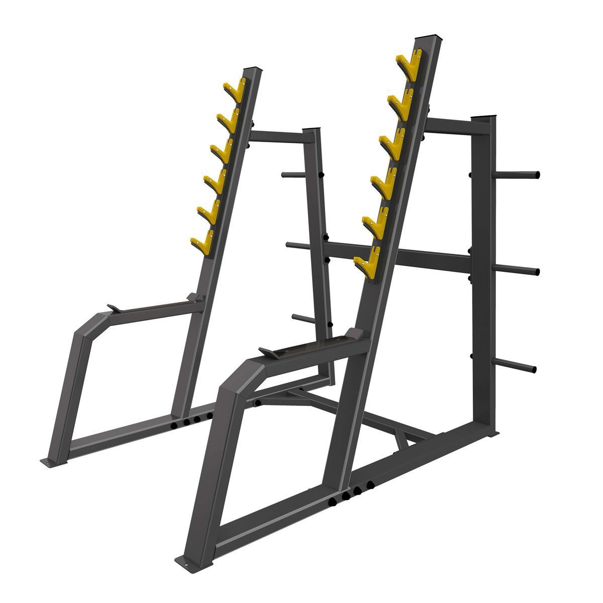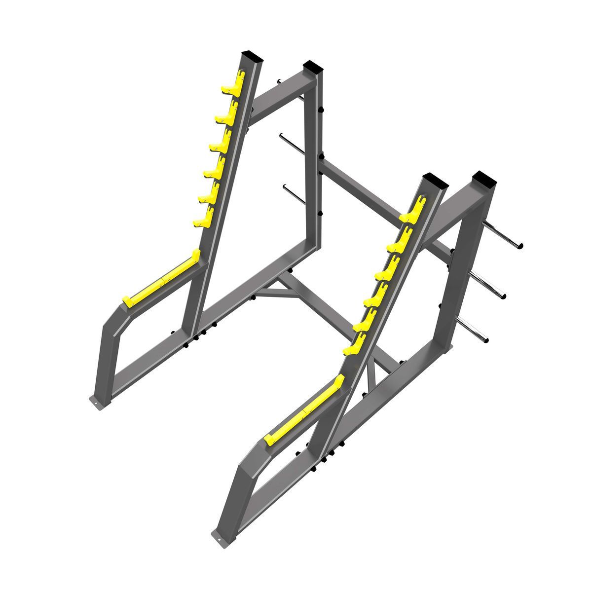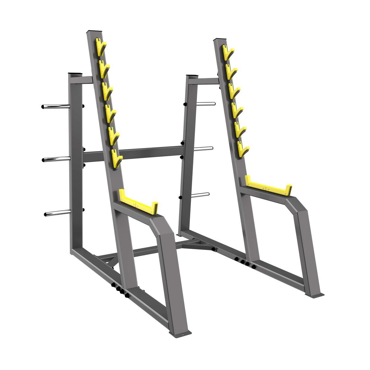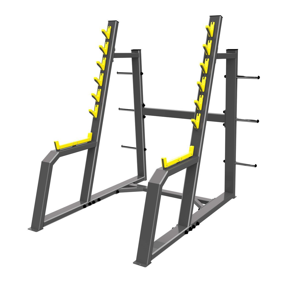 Стойка для приседаний с ограничителями PROFI-FIT Стойка с шестью ограничителями предназначена для безопасного выполнения упражнения «приседание со штангой» Стойка позволяет фиксировать снаряд на различных уровнях, тем самым варьируя нагрузку. Держатели для дополнительных «блинов» позволяют быстро добавить или убрать вес на снаряде.