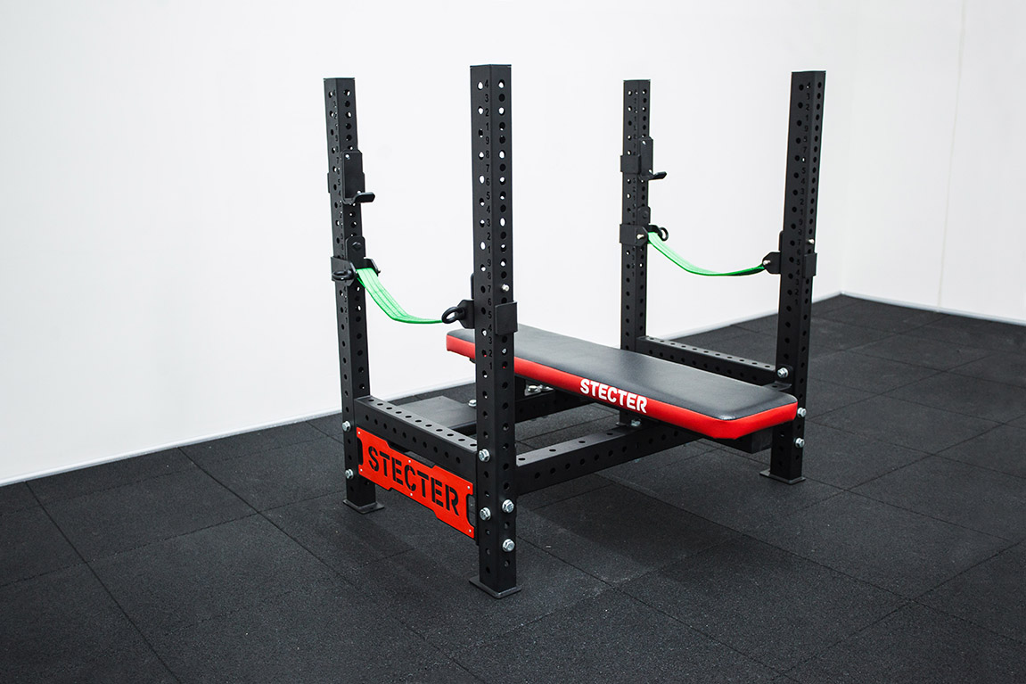 STECTER представляет Вам многофункциональные стойки с горизонтальной скамьей для жима лежа! Мы объединили прочный и брутальный каркас с красивым и современным дизайном. В результате у нас получился универсальный спортивный тренажер с множеством других достоинств: