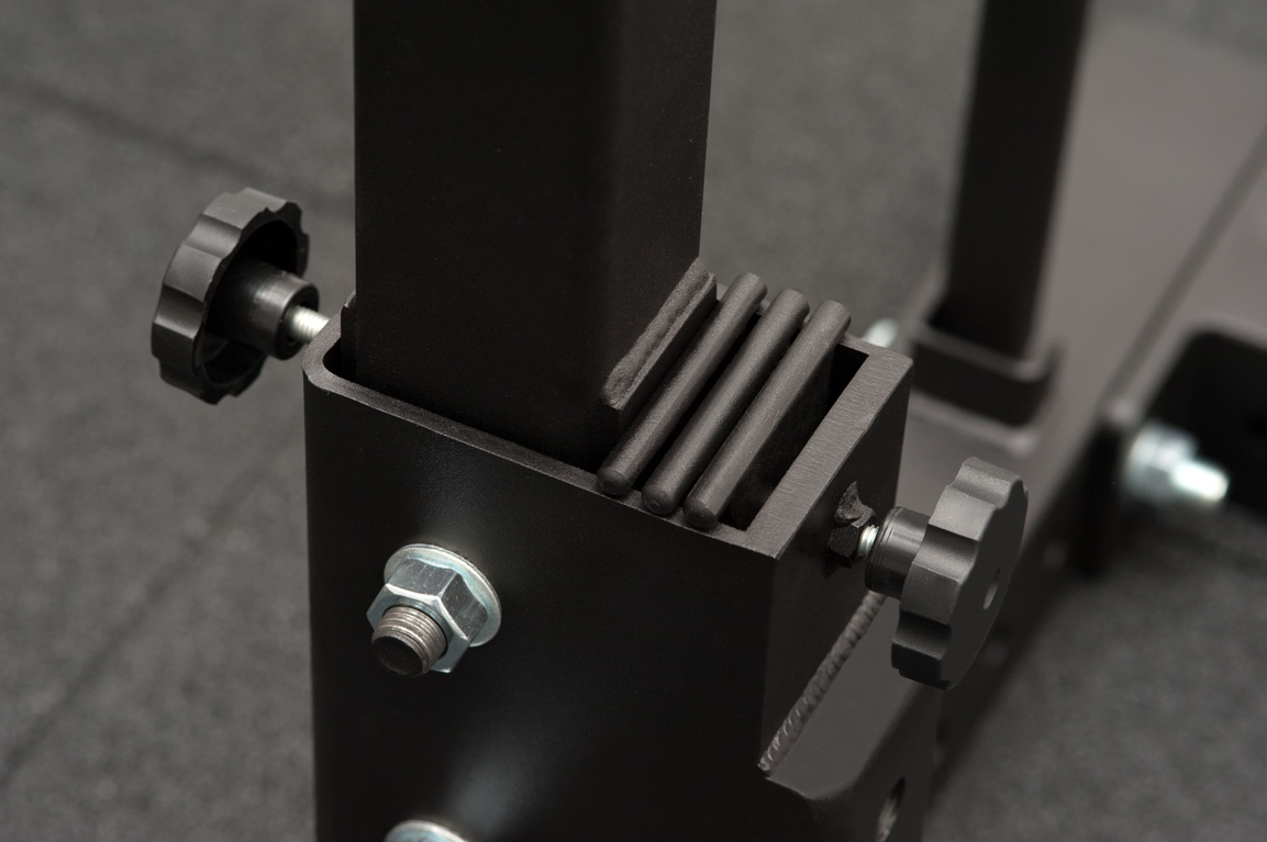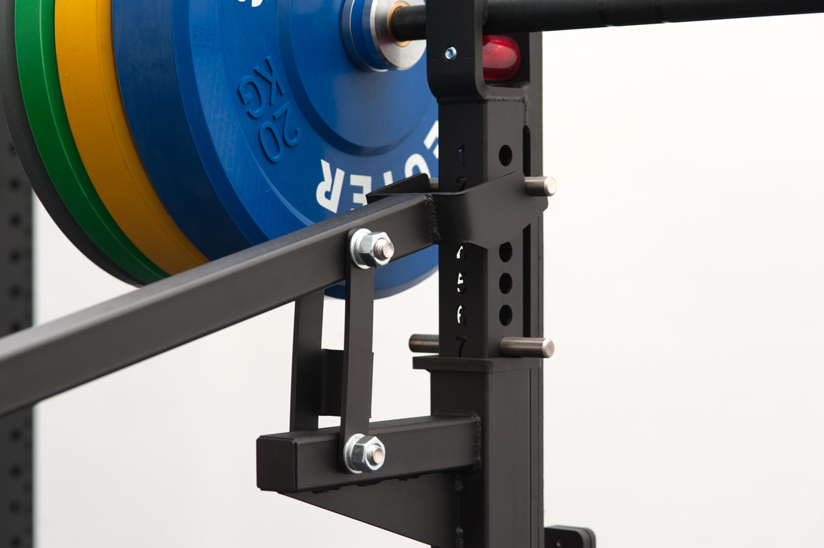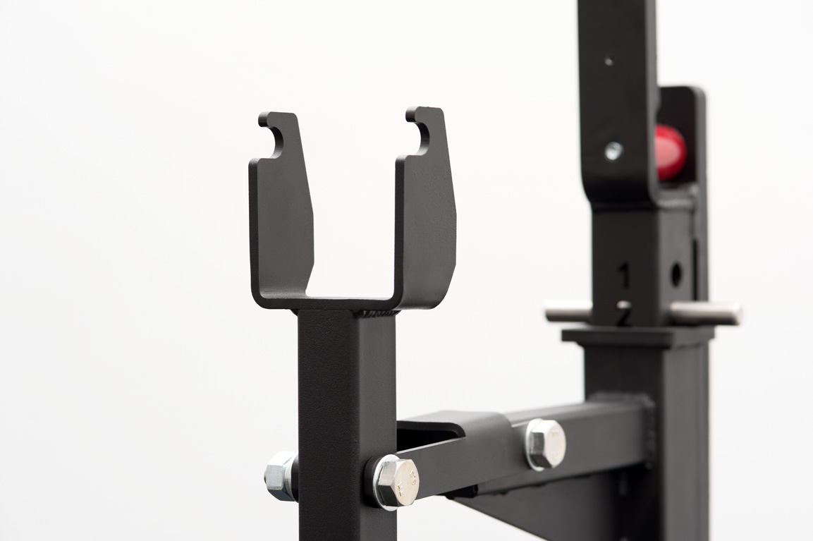 - Стойки имеют возможность наклона внутрь для работы с большими весами. При помощи фиксаторов и страховочных штырей мы исключаем создание травматических ситуаций и гарантируем полную безопасность спортсменов.