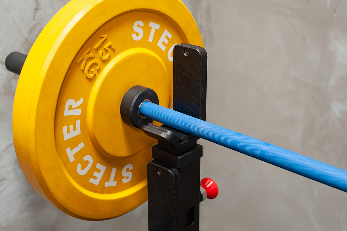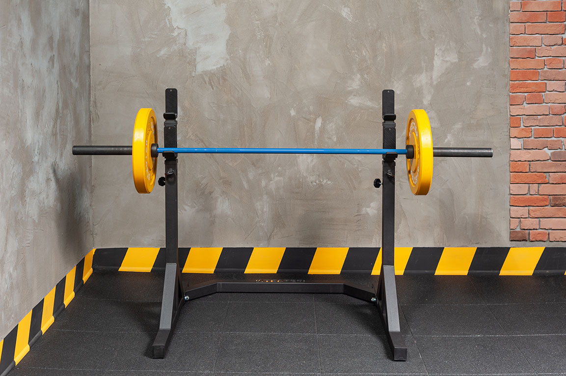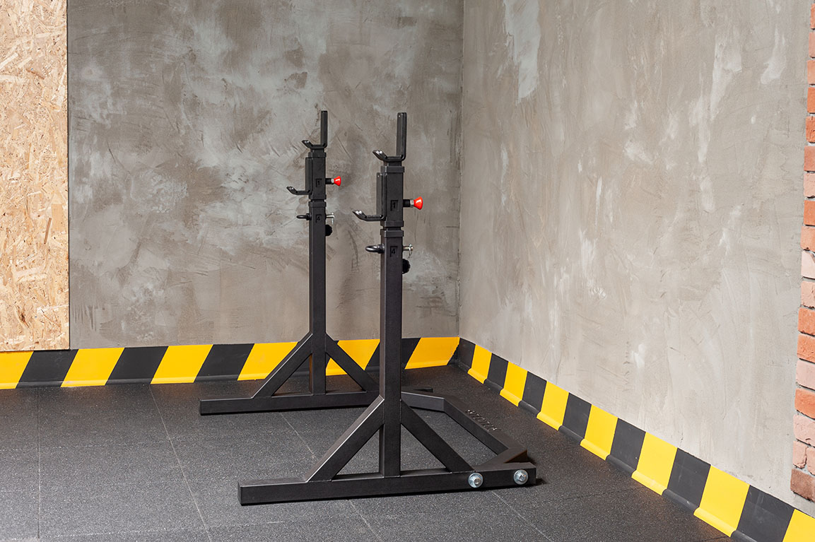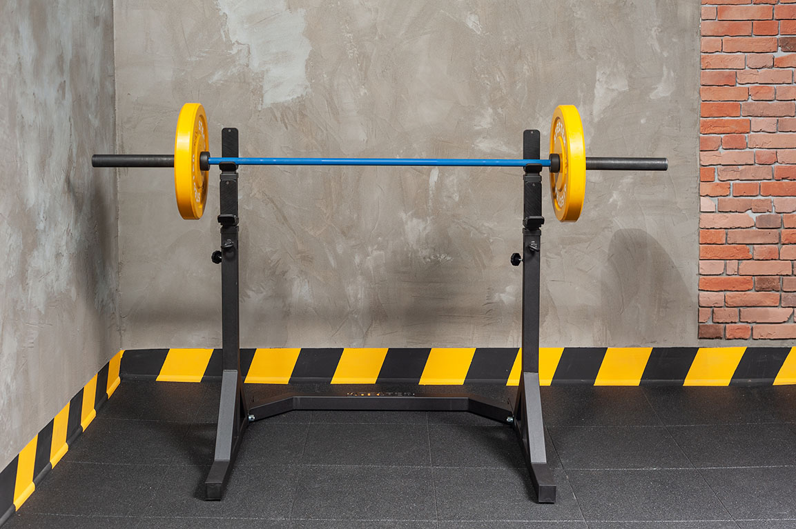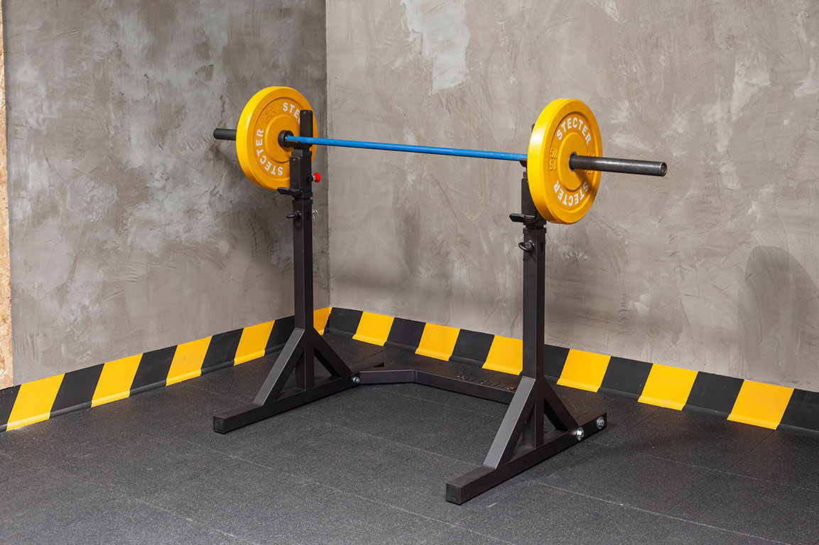 - Двойные J-крюки для штанги регулируются по отдельности и могут быть установлены одновременно как для выполнения упражнений в стойке, так и под жим лёжа.