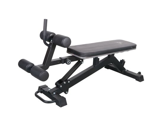 Скамья регулируется по углу наклона в широком диапазоне, до 24°, включая отрицательный. Всего 6 уровней регулировки.