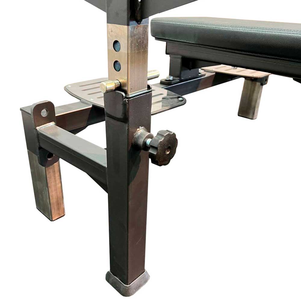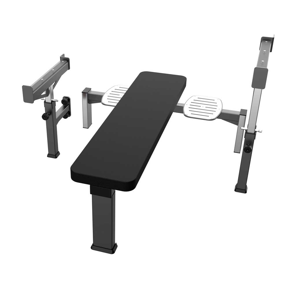 - Данная скамья со страховочными упорами является дополнительным модулем для стойки А-3147, которая позволяет выполнять упражнения жим лежа.