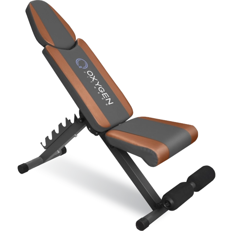 - За счет широких возможностей по регулировке тренажер можно использовать как стандартную скамью для жима (угол наклона спинки 45 градусов), как горизонтальную скамью или скамью с отрицательным наклоном (угол наклона -25 градусов).