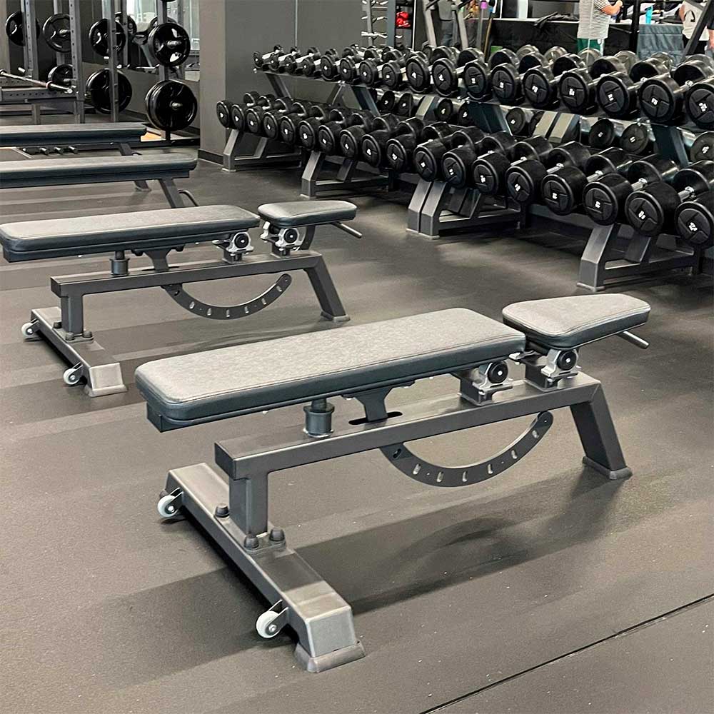 - Специальная рукоятка и транспортировочные колесики для удобного перемещения скамьи в зале.