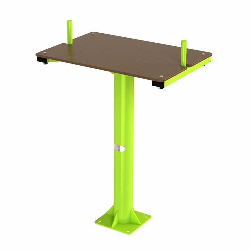 - Основание рамы тренажера выполнены из труб 120х80 мм с толщиной стенки 3 мм. Рамы для установки стола выполнена из трубы 40х40 мм с толщиной стенки 1,5 мм. Рукояти диаметром 25 мм, длинной 150 мм. В основании рамы приварена пластина размерами 304х304 мм толщиной 8 мм, усиленная косынками из листа толщиной 6 мм. Стол выполнен из качественной фанеры толщиной 24 мм. Размеры стола 920х660 мм.