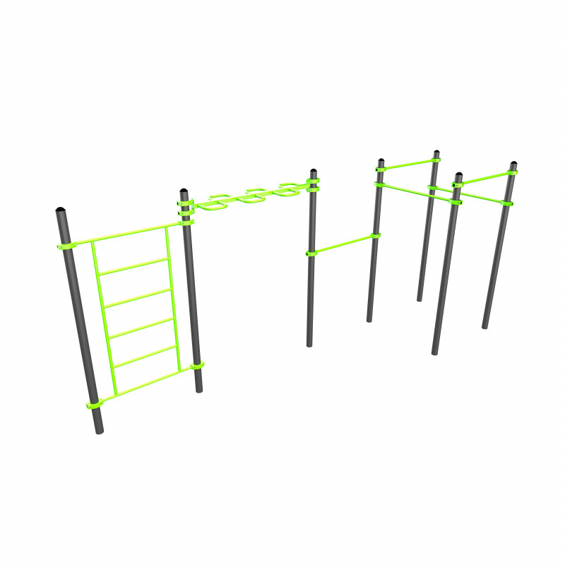 - Изделия окрашены порошковой краской: опорные столбы - графит, навесные элементы - Pantone 382C (др.опц-но) и укомплектованы пластиковыми заглушками. Благодаря этому изделие может в течение длительного времени противостоять коррозийным процессам, выдерживать повышенные интенсивные нагрузки. Фурнитура (хомуты, винты и гайки) для монтажа комплекса поставляется в комплекте.