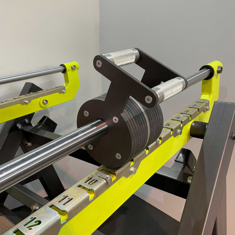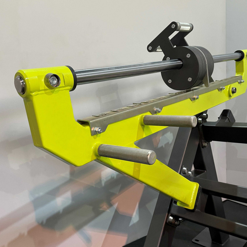 - Рычаги тренажера оснащены передвижными блоками, изготовленные из листового материала толщиной 8мм., весом 25 кг на один подвижный рычаг.