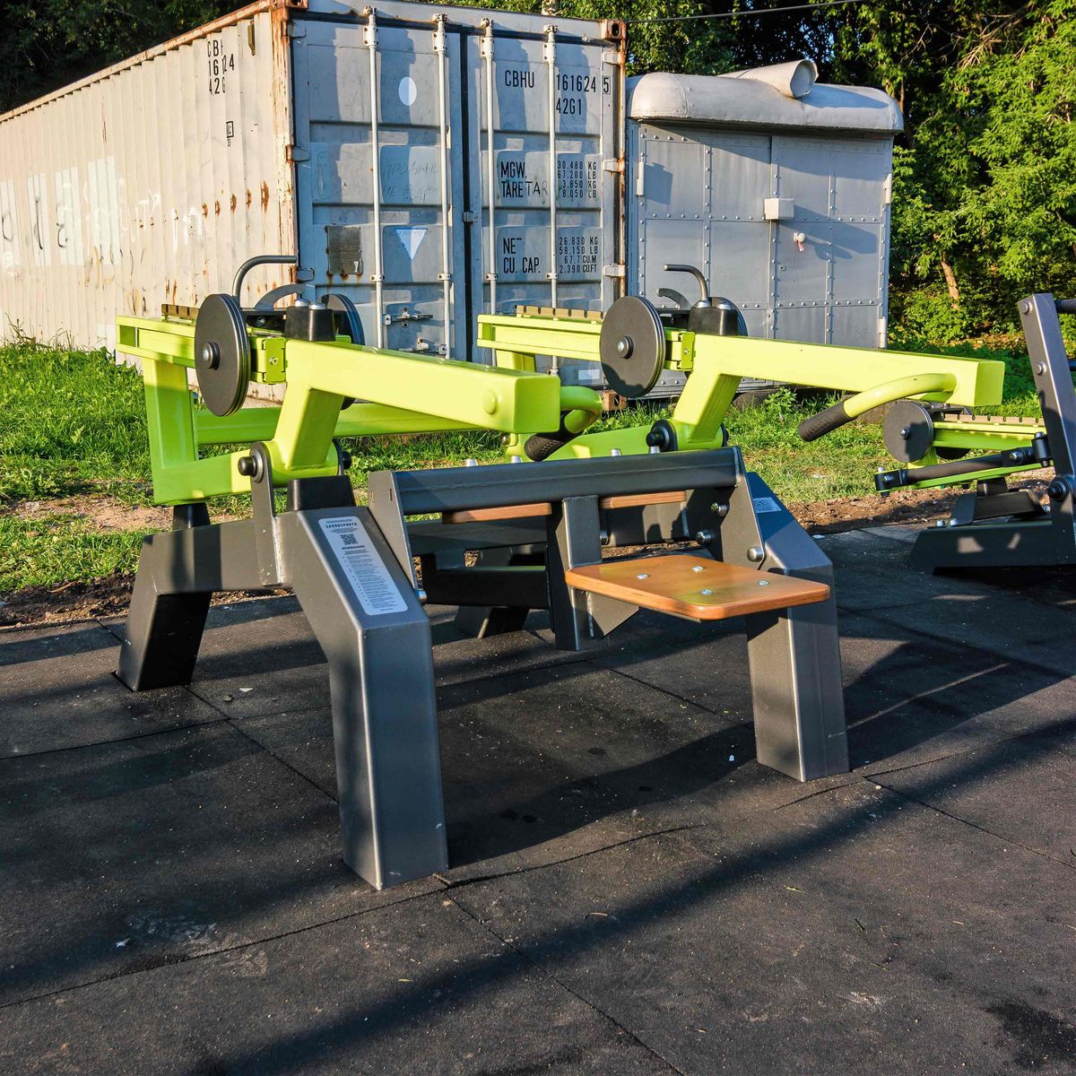 - Изготовление деталей осуществляется с применением технологии шип-паз на высокоточных станках лазерной резки, что обеспечивает точность линейных размеров, точность позиционирования деталей в сборочных узлах и стабильность размеров конструкции тренажера. Окраска металлических частей изделия выполнена методом порошковой окраски, обеспечивающей высокие антикоррозийные свойства, прочность, износостойкость и экологичность покрытия. Деревянные элементы покрываются защитным текстурным покрытием для древесины. Состав образует на поверхности древесины воздухопроницаемое, влагоотталкивающее полимерное покрытие. Сохраняет текстуру древесины и придает ей нужный оттенок. Надёжность и прочность соединений разъемных элементов тренажера, обеспечивается применением оцинкованного качественного крепежа.